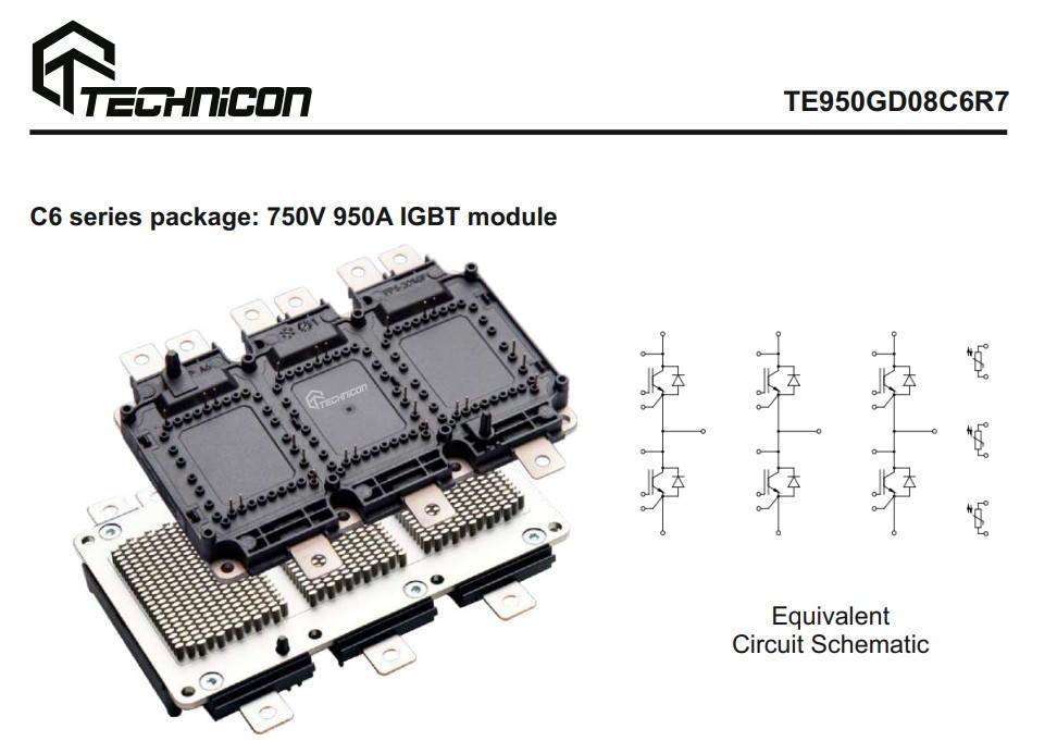 TECHNICON presented IGBT module TE950GD08C6R7 in C6 (HPD) case for hybrid and electric vehicles